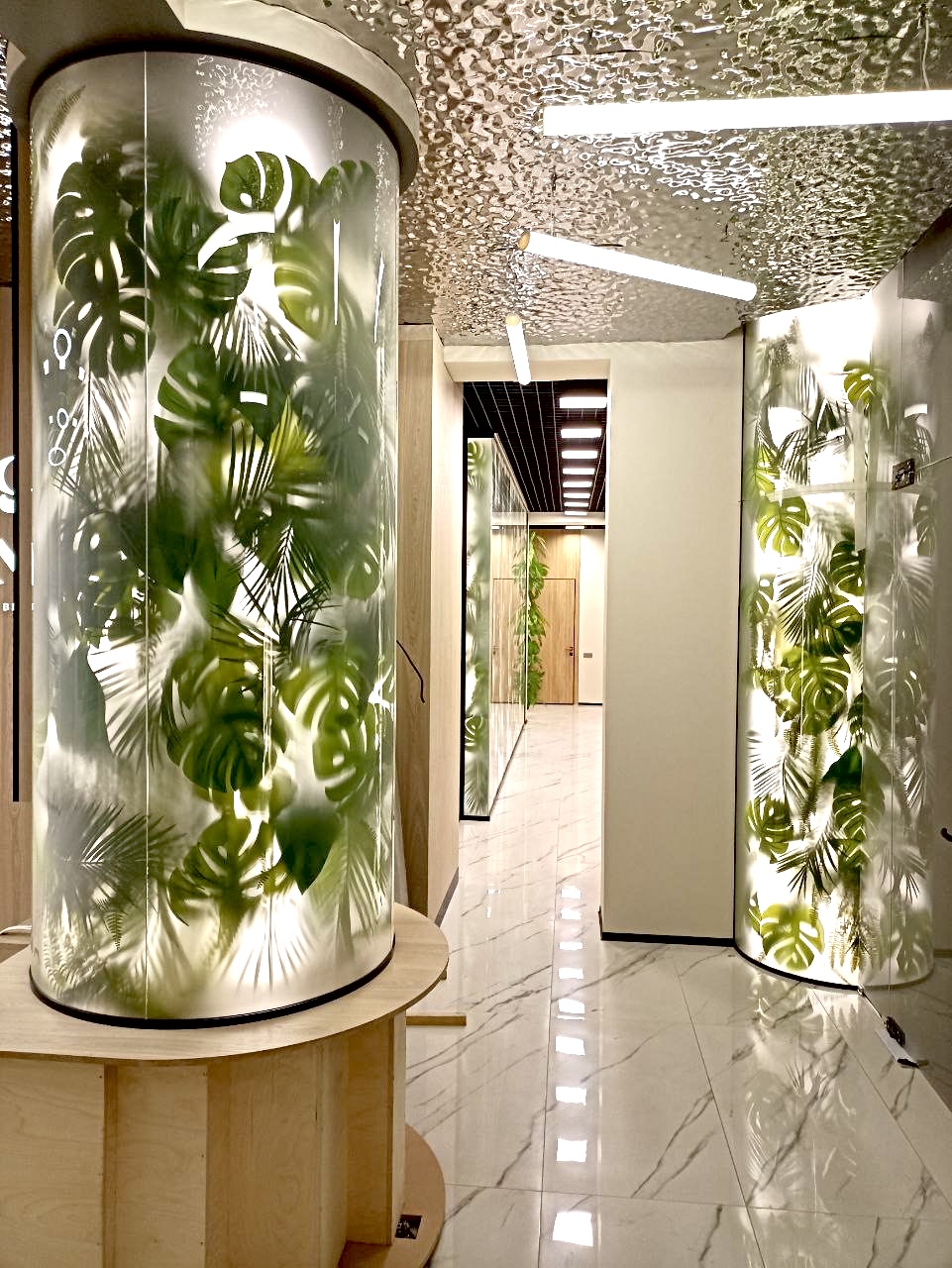 Ну и конечно – эстетика. Стеклянные перегородки «ДизайнСтекло» – весьма изысканны и элегантны, они гармонично смотрятся в любом архитектурном стиле. Кроме этого, стеклянные перегородки в Тольятти могут стать в буквальном смысле украшением помещения, ведь вашему вниманию представлен широкий выбор различных рисунков для нанесения на стеклянную перегородку «ДизайнСтекло». Так, вы сможете подчеркнуть стиль помещения с помощью оригинальной перегородки.